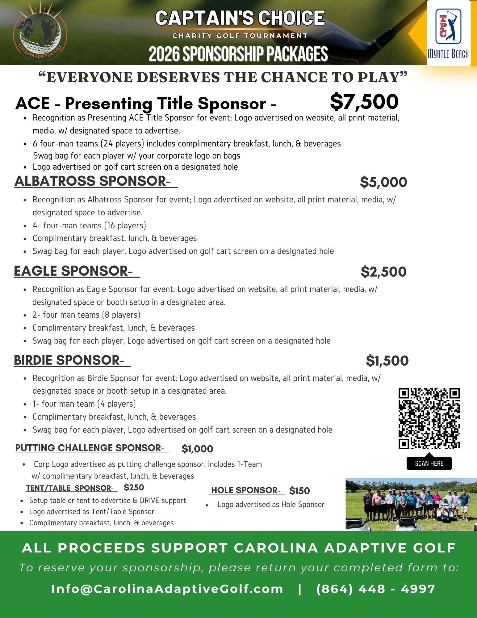 For inquiries and sponsorship opportunities, please contact info@carolinaadaptivegolf.com